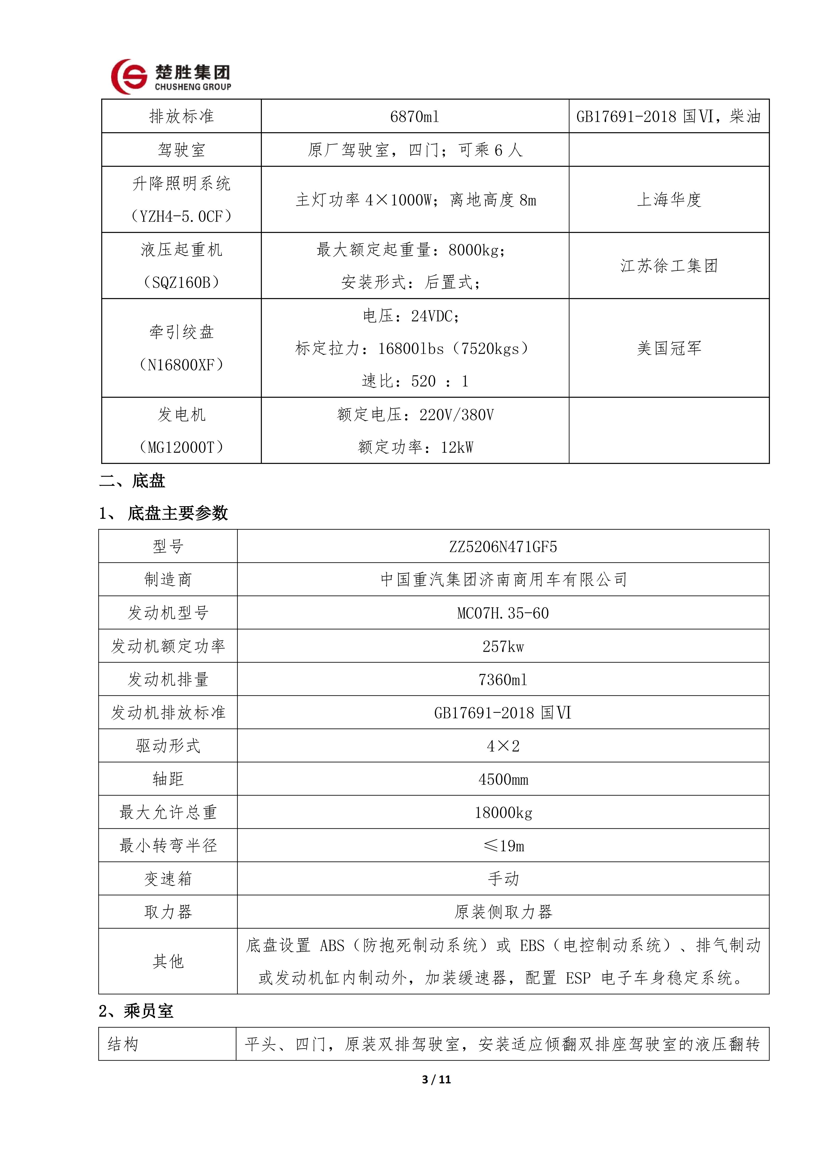 楚勝牌CSC5120XZMD6搶險救援照明車