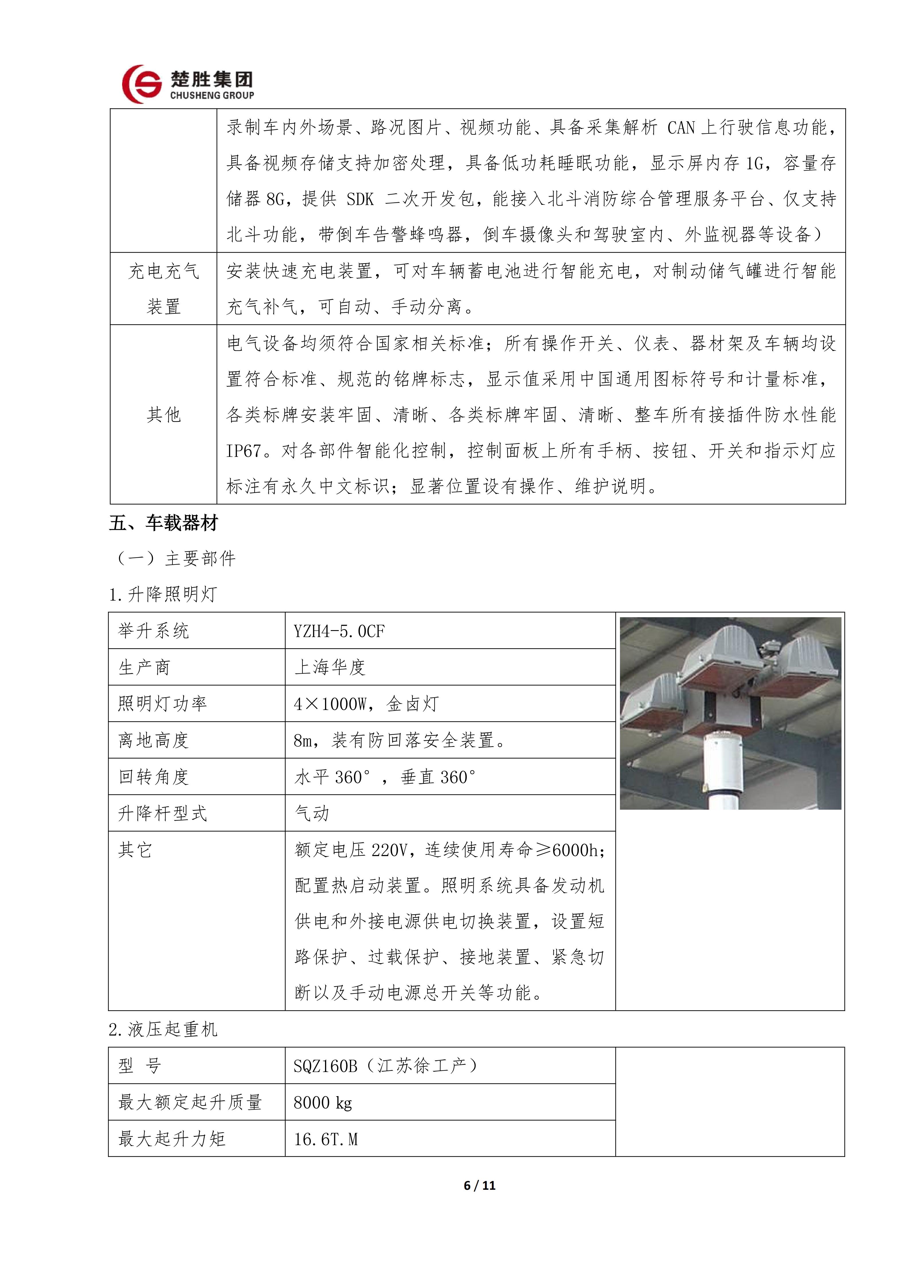 楚勝牌 CSC5030TXFQC10/CC6 型器材消防車