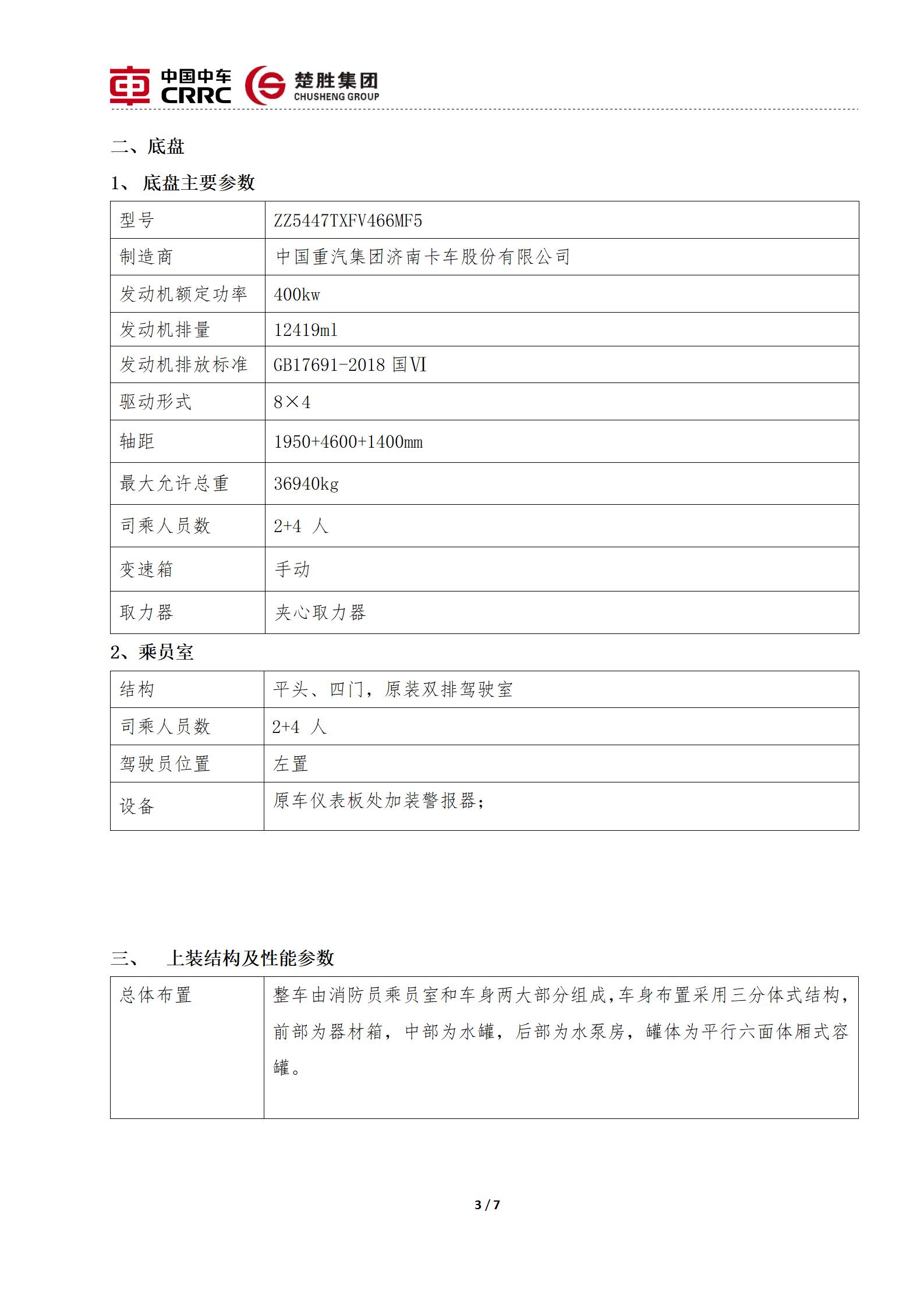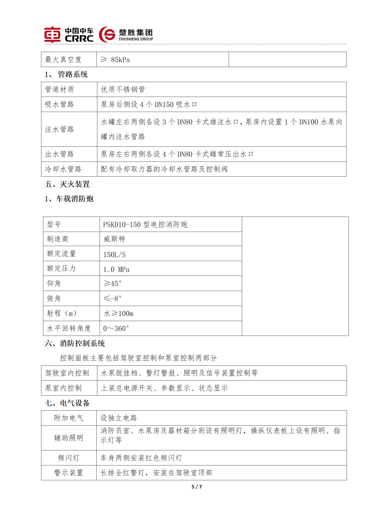 楚勝牌 CSC5140TXFJY90/S6 型 搶險救援消防車