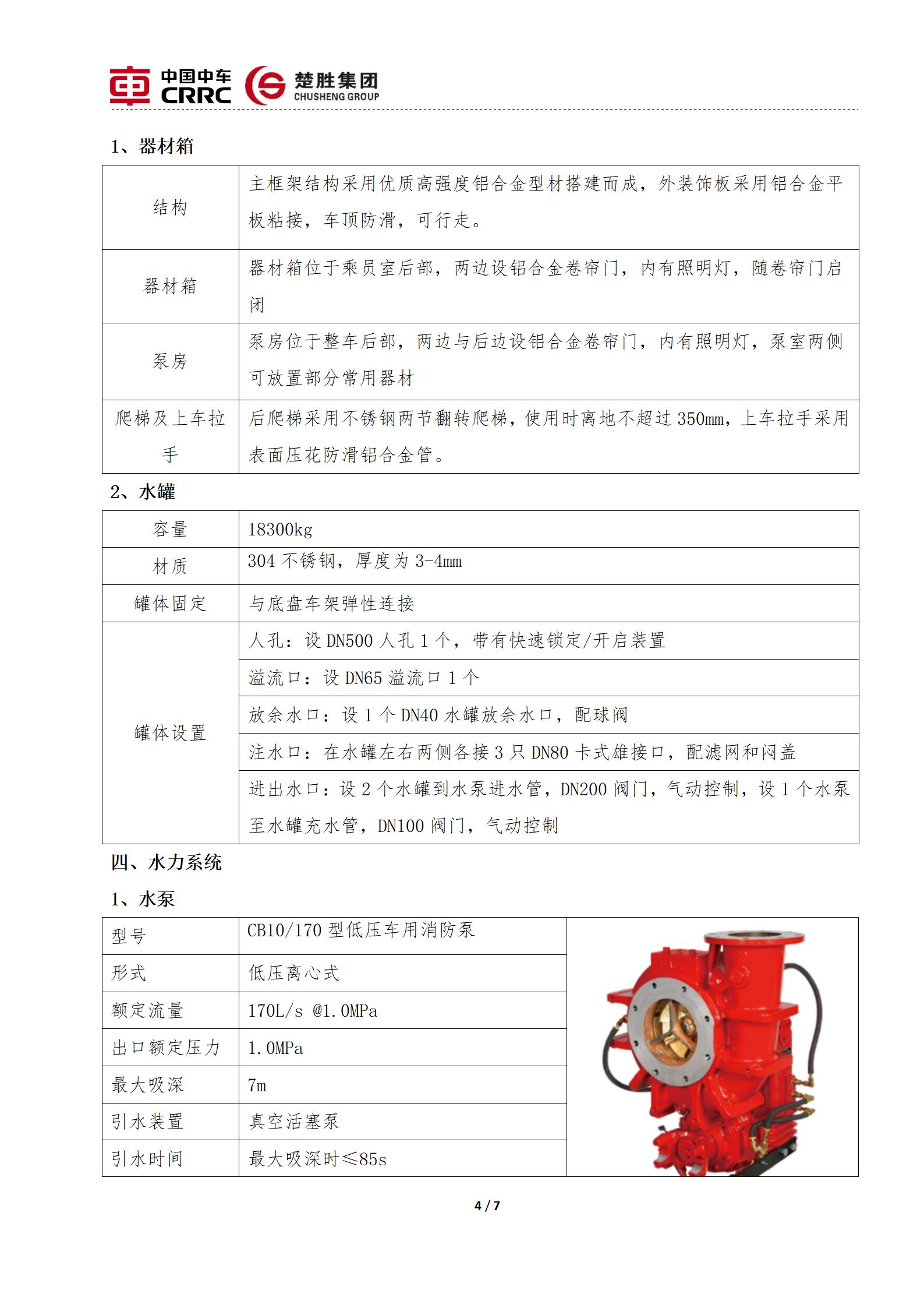 楚勝牌CSC5370GXFSG180/Z6型水罐消防車